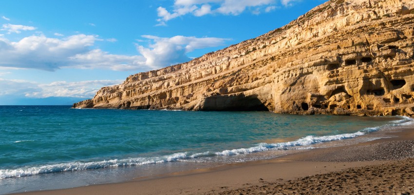 Matala is not only a place of brotherhood, but a place of unique natural beauty as well, with prehistoric caves formed on the side rocks of Matala beach.